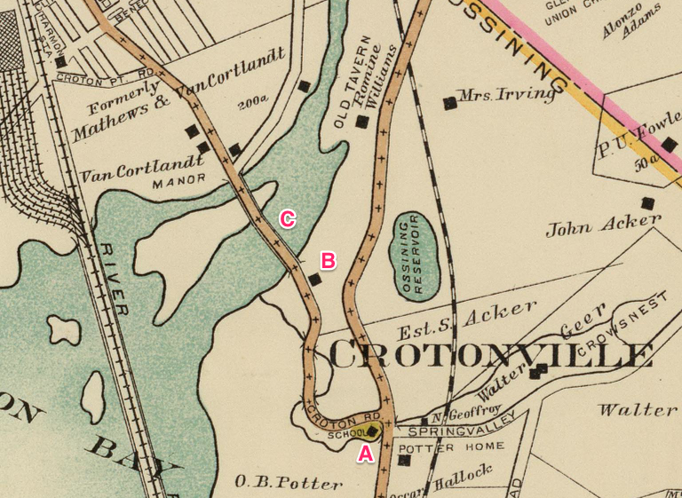 Detail from Photo-auto maps showing the route going south, with the Crotonville School